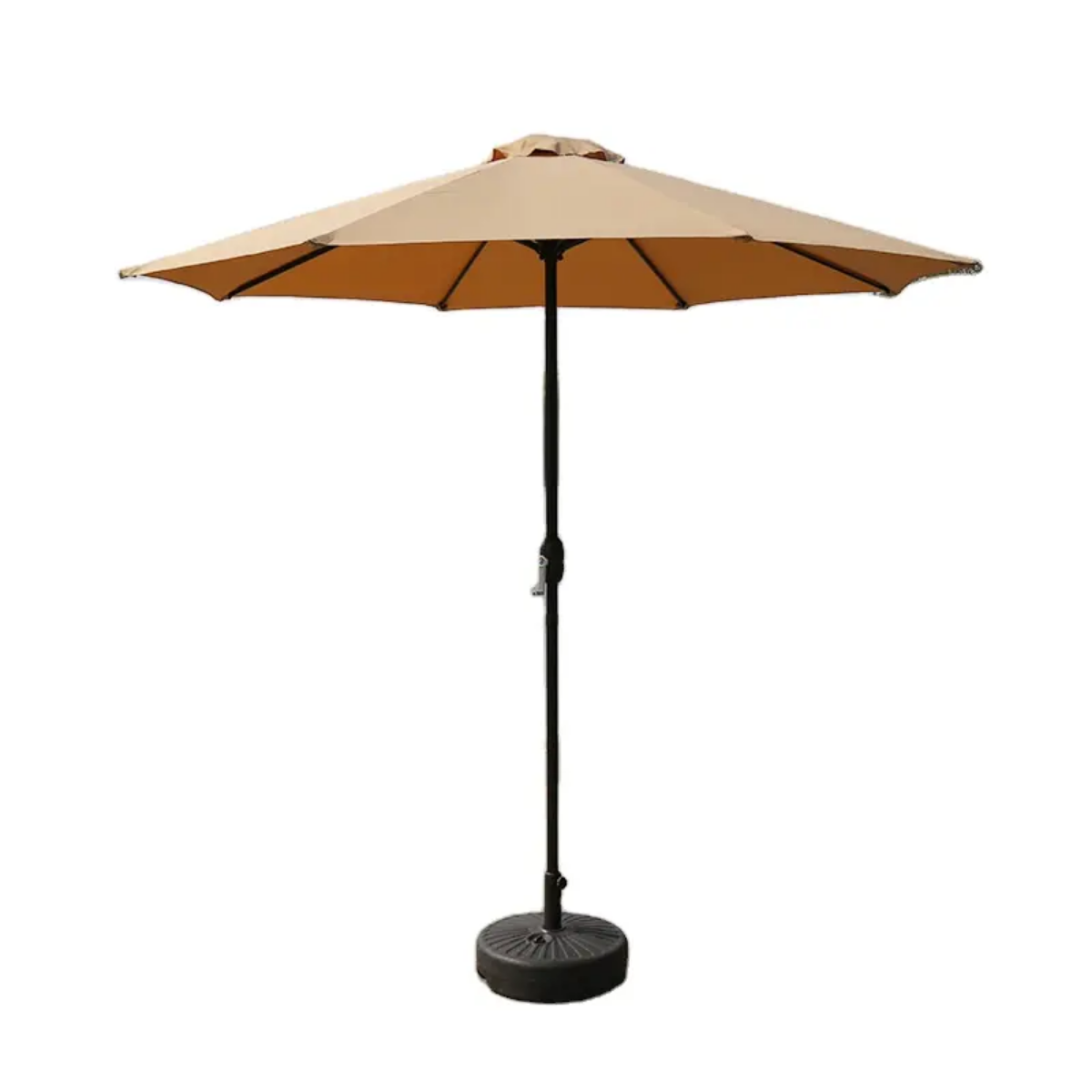 This outdoor umbrella with stand provides the perfect solution for preventing sun burn in garden, deck, patio, beach and other outdoor living area. It features sturdy aluminum/steel pole with powder coated black finish for stability and durability. The canopy features 10 feet span for enough covering space. The overall height of the umbrella parasol is 9 feet to the top of the canopy and 7 feet from the ground to the bottom of the canopy. It is made of UV resistant polyester fabric. It is also easy to clean.